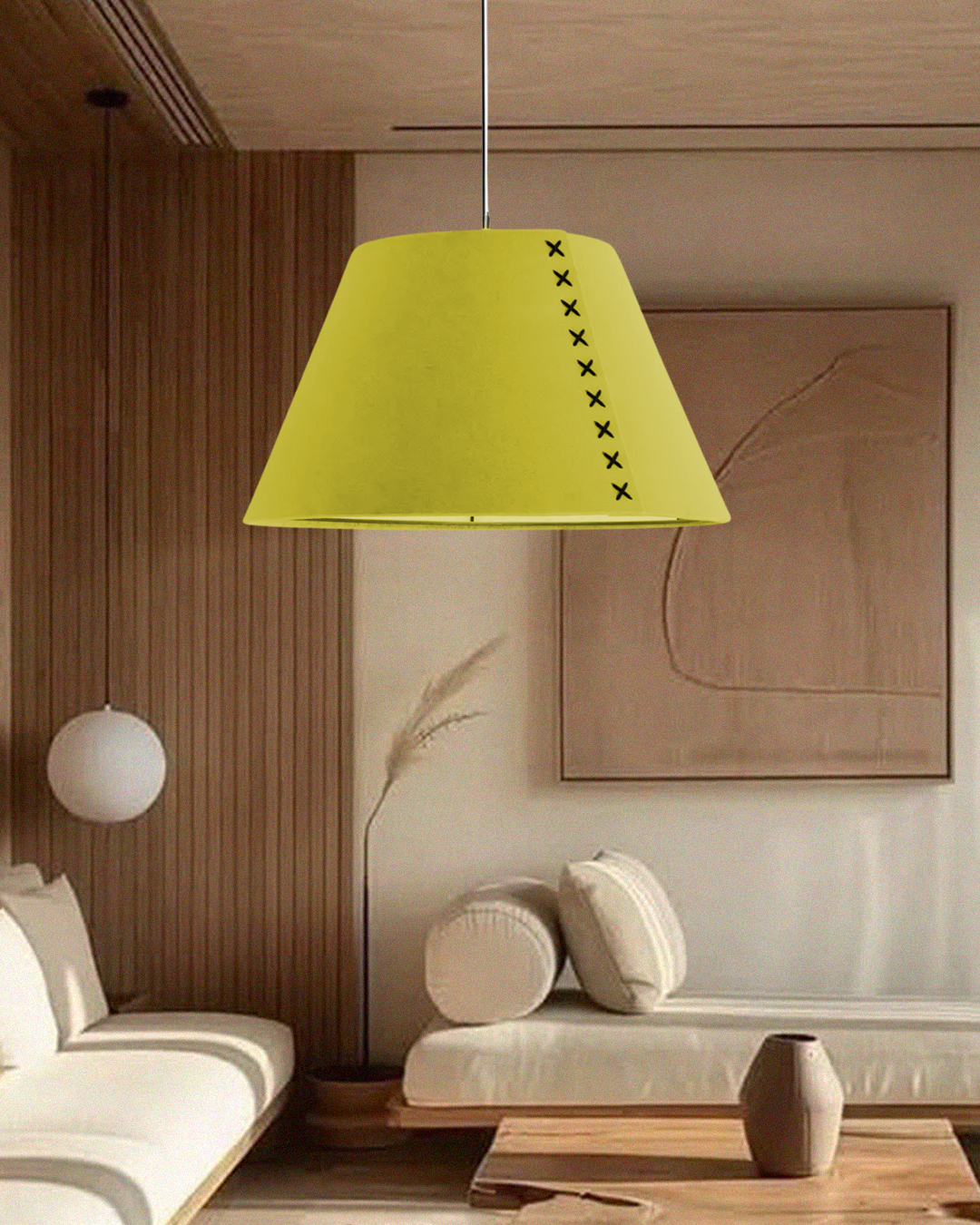 Distinctive Shade Design: Tapered shape with creative stitched detailing for visual appeal.