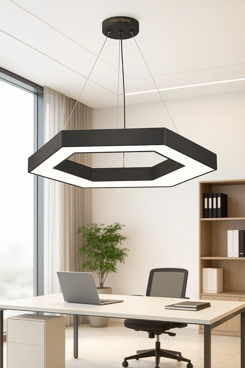 Handcrafted in India with meticulous attention to detail, the Hollow Hexagon Ring Beam Posh Office Light reflects Light Beam’s commitment to innovation, premium craftsmanship, and long-term performance. Integrated energy-efficient LED technology ensures reliable illumination with reduced power consumption and minimal maintenance.