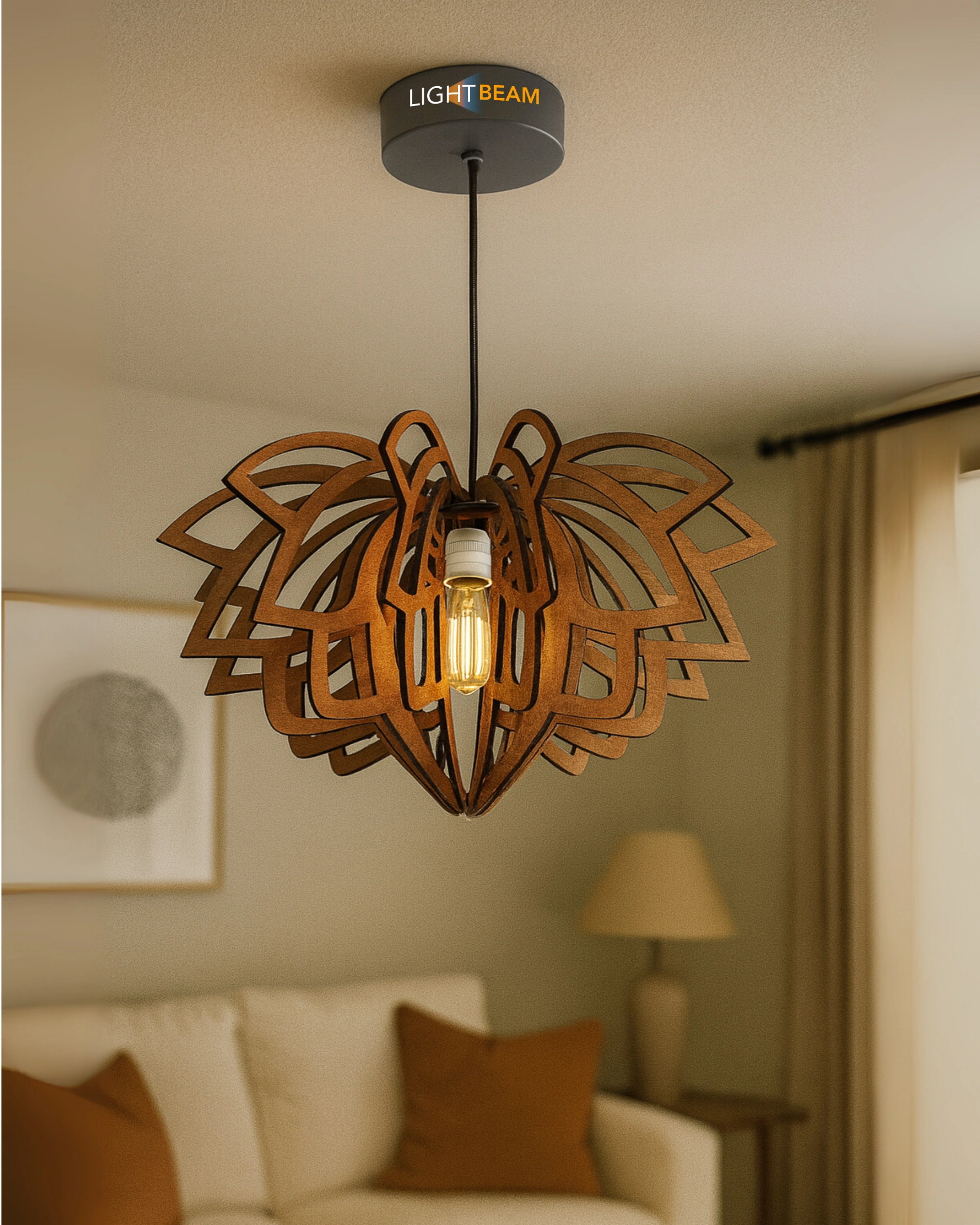 The Mirazea beam threads are where geometry meets imagination. Crafted from intricately layered MDF components, it forms an artistic labyrinth of shapes that seem to dance around the bulb. When lit, Mirazea transforms any room into an exhibit of light and shadow — a bold, sculptural centrepiece that commands attention.