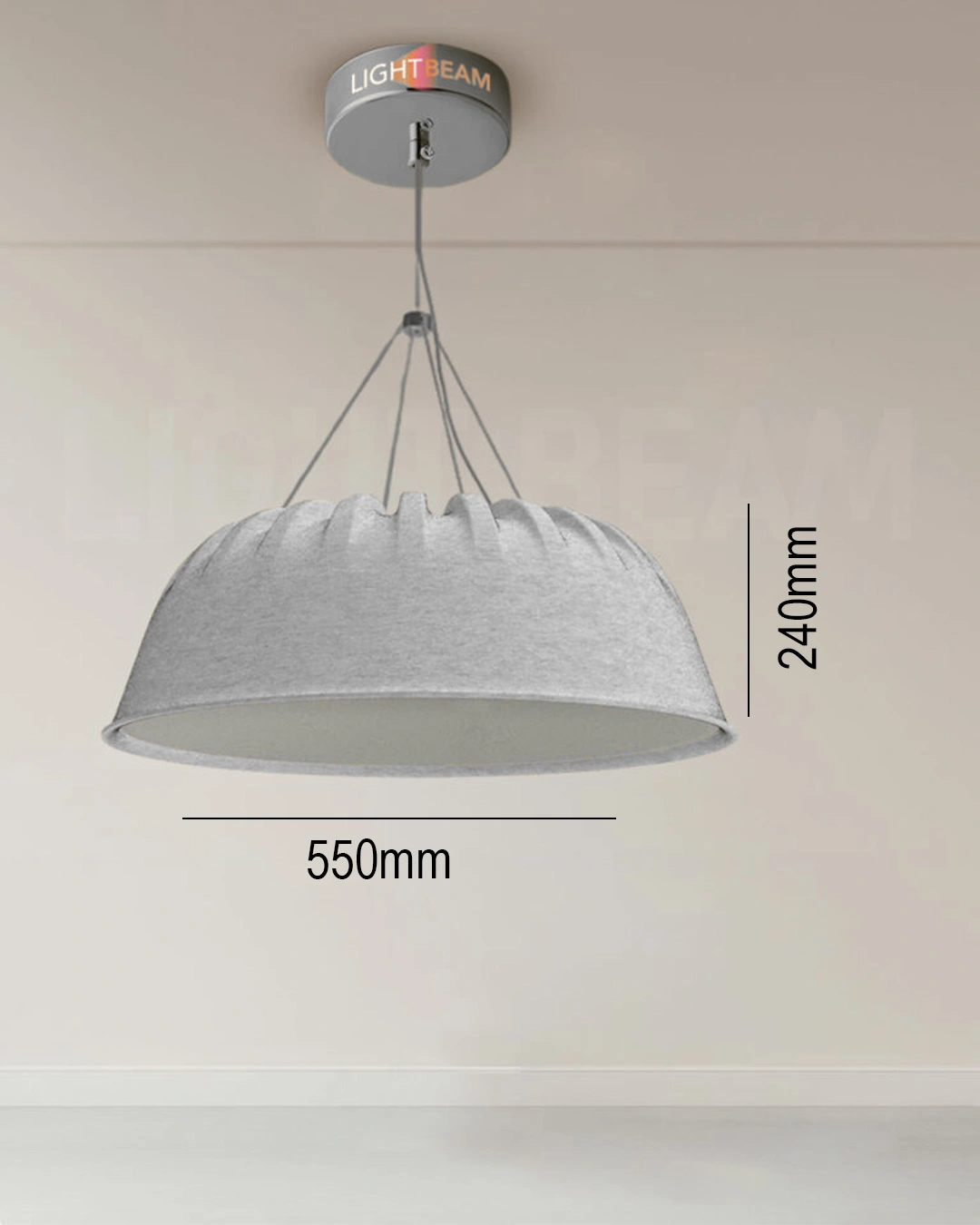 Its ripple-textured dome in sunlit mustard yellow adds warmth, while a subtle white underglow creates a soothing ambience. This pendant light enhances both visual and acoustic comfort in any setting.