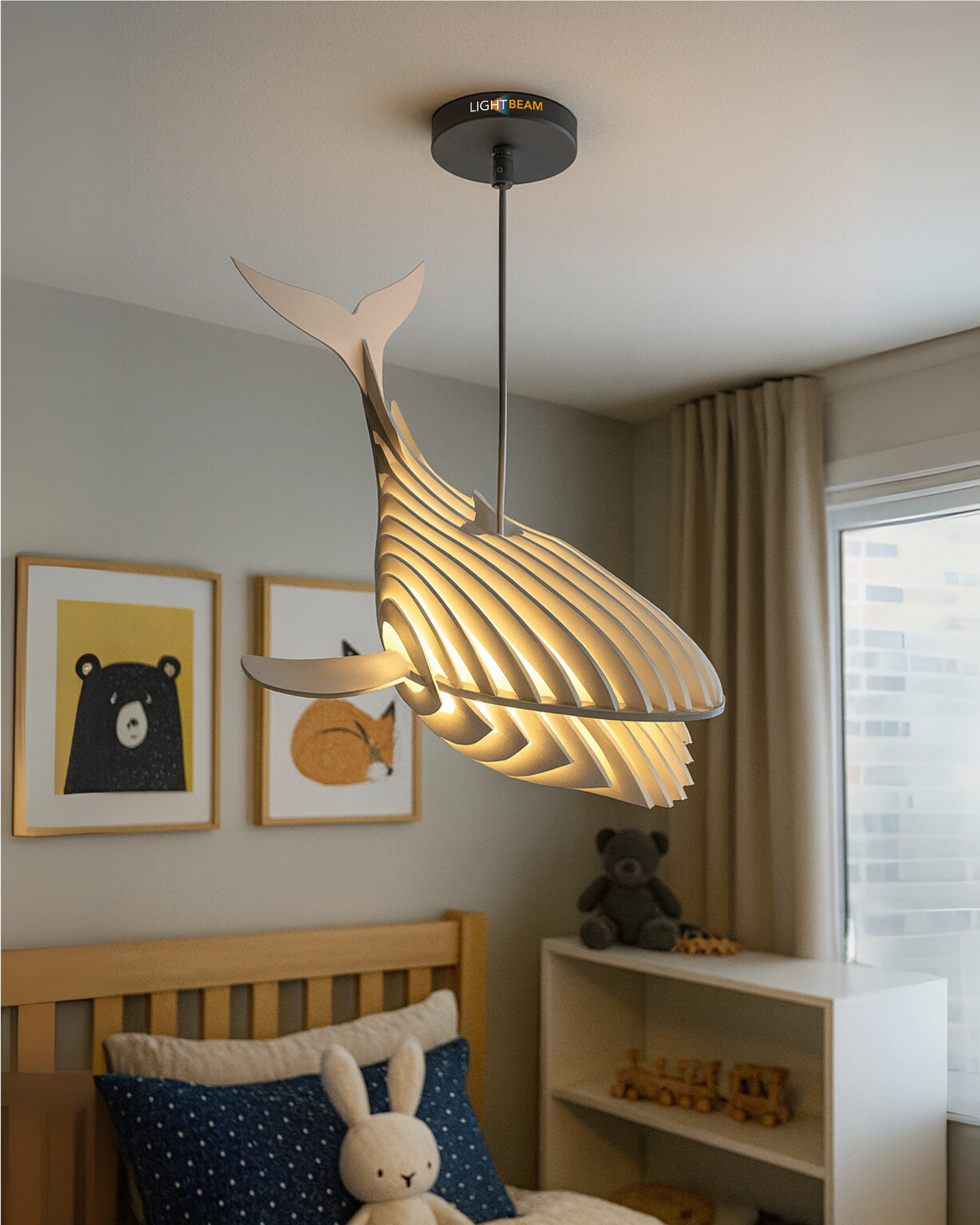 The Starlyn Beam Threads light is a breathtaking fusion of art, motion, and light. Inspired by the fluid form of marine life, its undulating MDF slats create a sense of movement and elegance — as if the lamp were gracefully swimming through air. When illuminated, Stralyn produces dynamic shadows and soft, diffused light that bring your space to life.